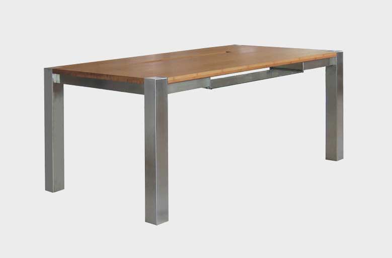 BS # Bureau Secrétaire inox brossé, bambou et verre h.73 x 90 x 160 cm Collection Bernard Massini pour le Régina, Nice
