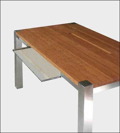 BS # Bureau Secrétaire inox brossé, bambou et verre h.73 x 90 x 160 cm Collection Bernard Massini pour le Régina, Nice