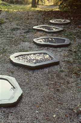 MIROIRS D'EAU 1994 béton poli, plomb et eau, 8 x 105 x 120 cm (x5) Collection privée, Roquefort-Les-Pins (06) |