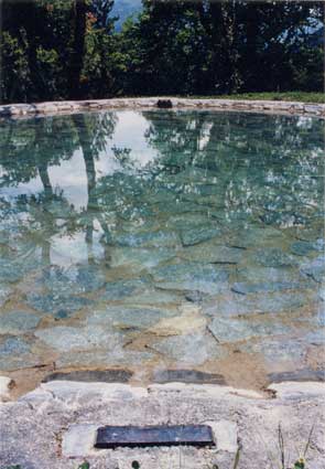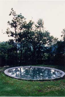 LAVOGNE 1999 Sculpture pour les oiseaux, les chèvres, les moutons, les salamandres, les papillons porphyre, cuivre, eau, Ø 6 m Collection de la Réserve Géologique Digne Les Bains (04)