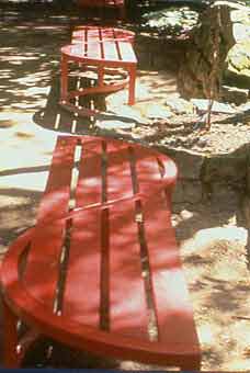 CONFIDENCES 1998 six confidents acier et bois peint et deux mille fleurs rouges Jeux de Genre Paris Musées Square Récamier - Centre Electra Paris